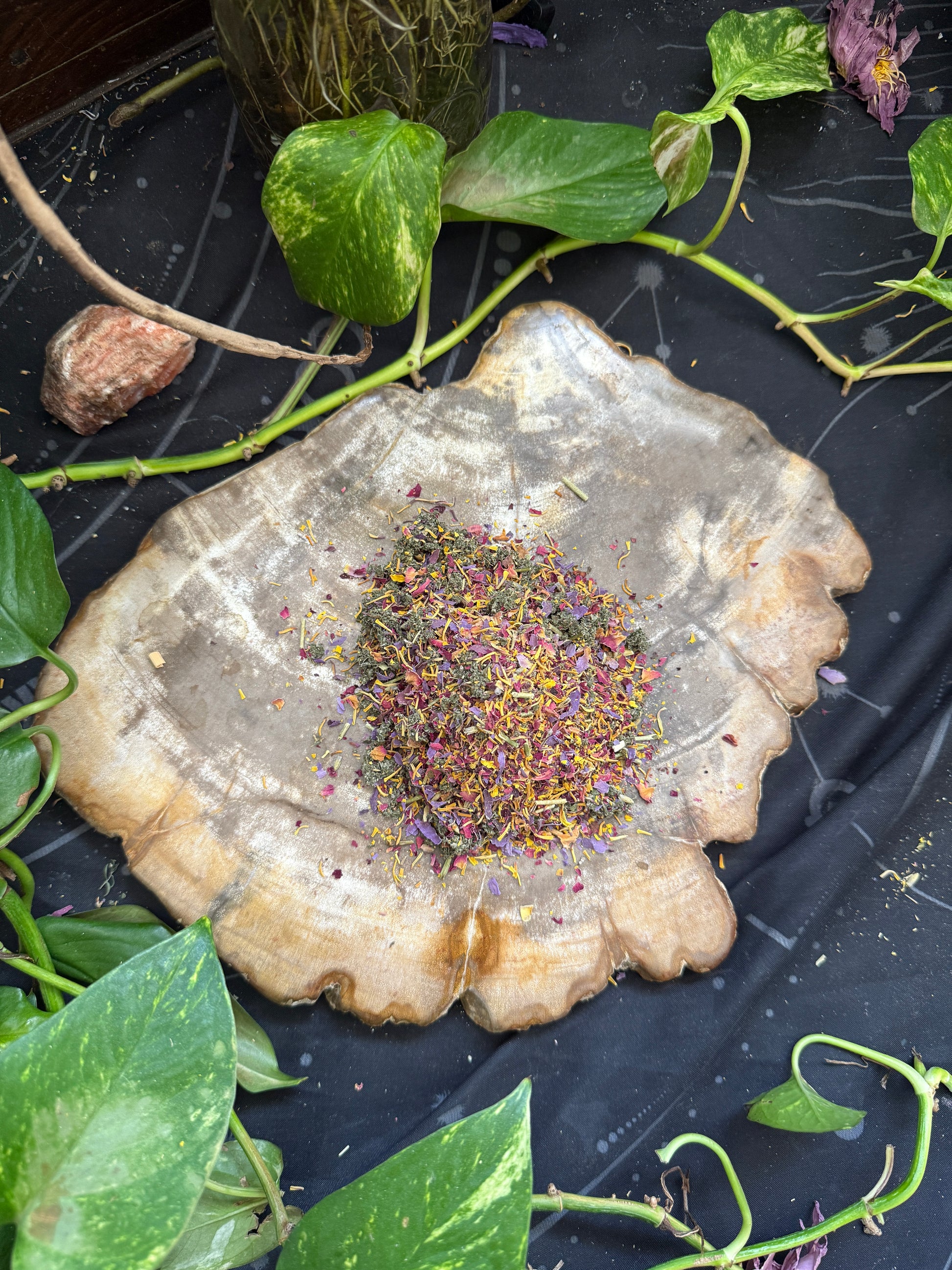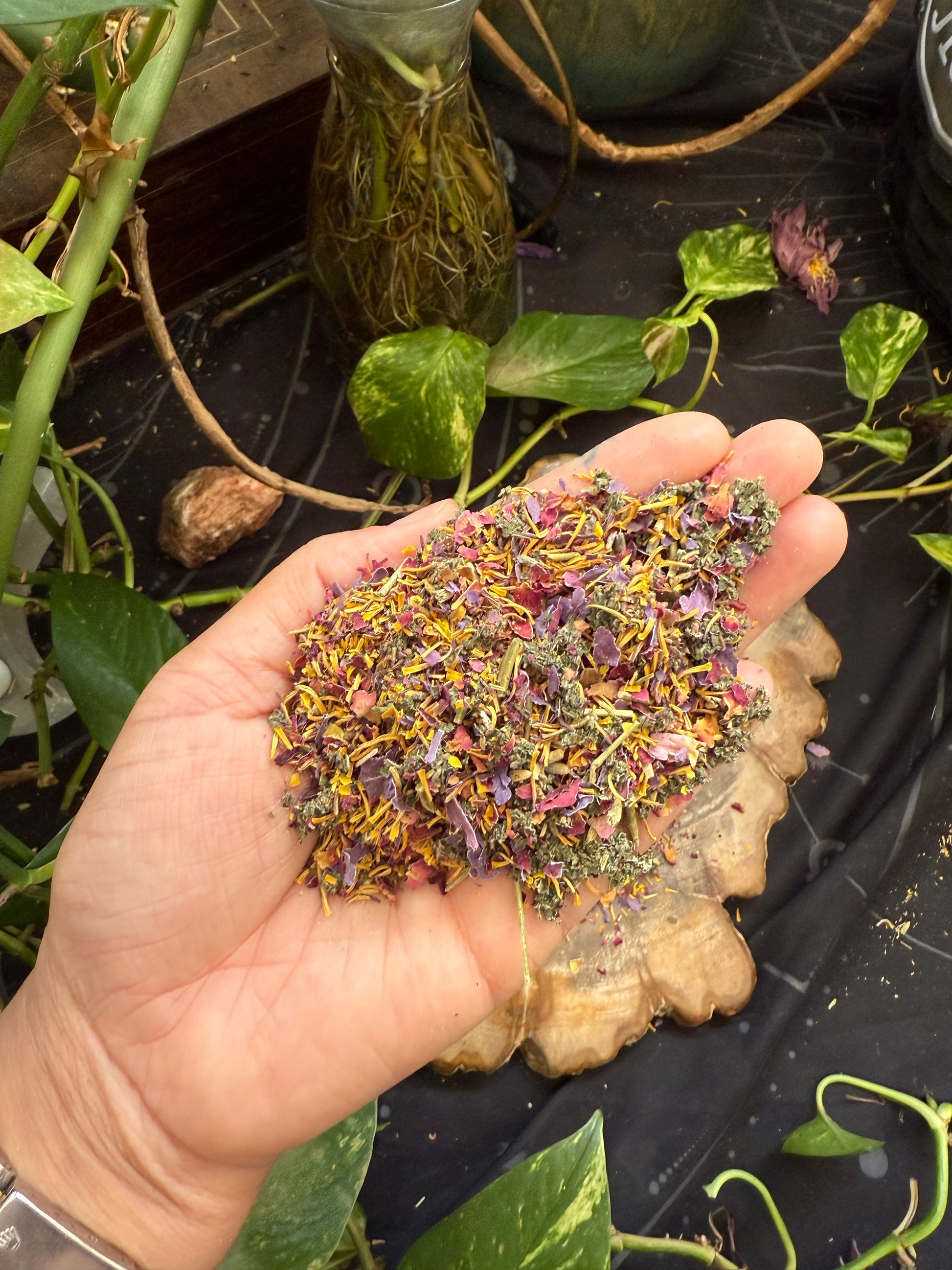 Each set contains 3 packed pre rolls — raspberry leaf, rose, hibiscus, and lavender — carefully prepared to support a serene, heart-centered experience.