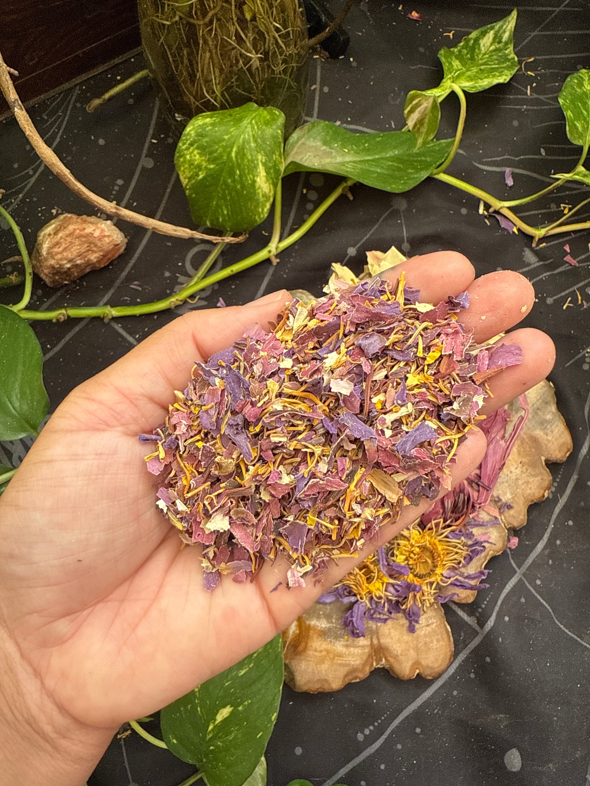 A gentle ritual for emotional balance and inner peace. Mixed Lotus is a botanical blend crafted from Blue, White, and Red Lotus — each known for their soothing, heart-centered qualities. Together, they support calm, clarity, and connection.
